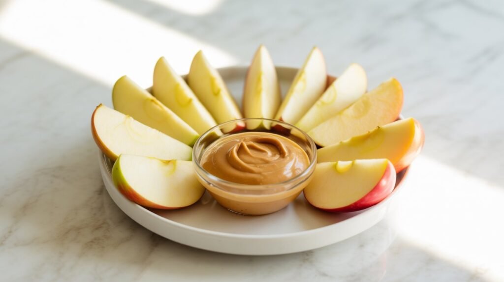Apples provide fiber, while peanut butter slows sugar absorption.