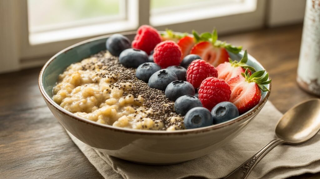 Oatmeal is a great option when prepared correctly. Using whole oats and pairing them with fiber-rich chia seeds helps regulate blood sugar.