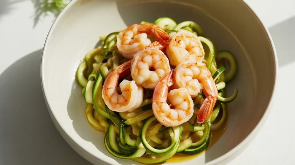 Zucchini noodles keep carbs lower while adding fiber and freshness. This meal is quick and perfect for busy nights.