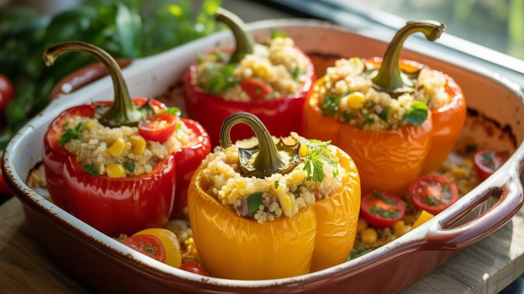 - Stuff into halved peppers.