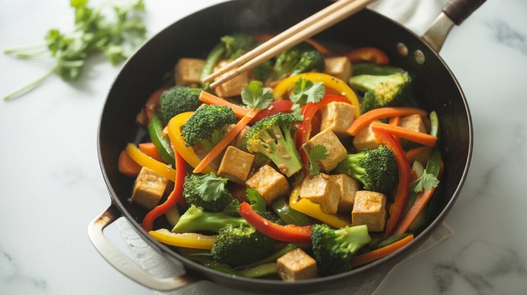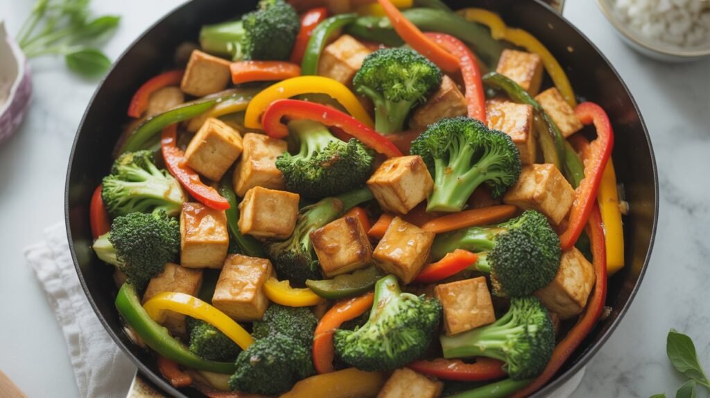 Protein from tofu combined with fiber from vegetables helps stabilize blood sugar and reduce hunger spikes. It’s quick, healthy, and customizable.