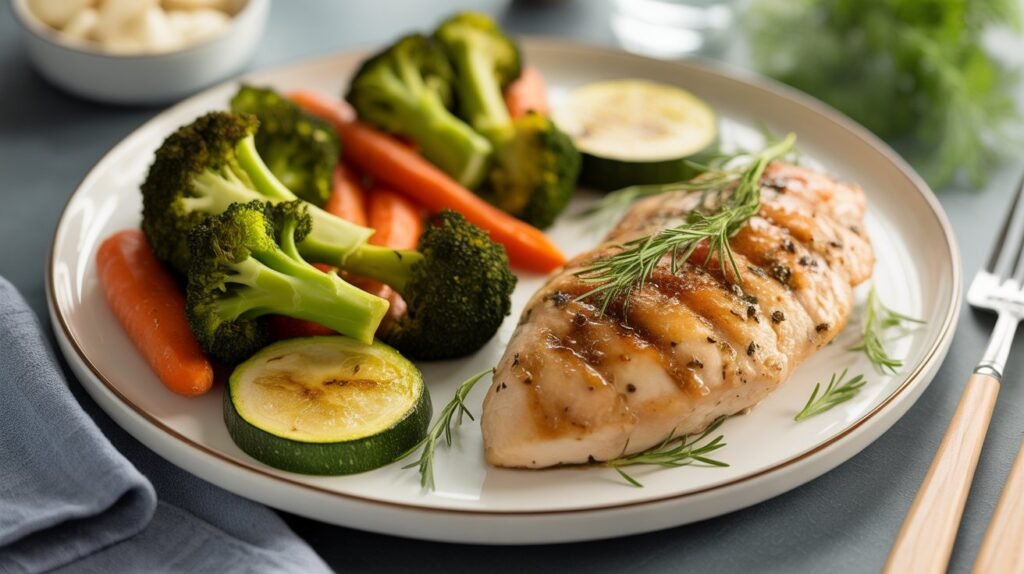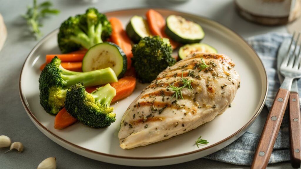 Grilled chicken breast is one of the best high-protein dinner options for anyone looking to stay full longer. It’s lean, packed with protein, and incredibly versatile. When paired with fiber-rich roasted vegetables, this meal becomes both satisfying and nutritionally balanced.