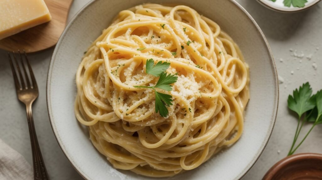 What makes this pasta perfect for busy nights is its flexibility. You can use any pasta shape you have, add leftover chicken or veggies if you want, or keep it simple with just garlic and butter. The sauce comes together quickly, coating every bite with rich, cozy flavor in minutes.