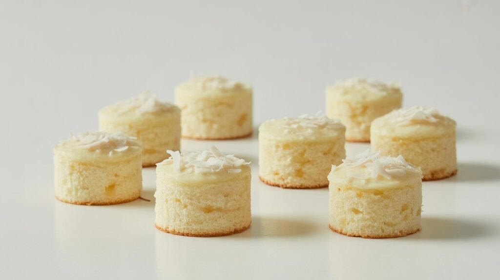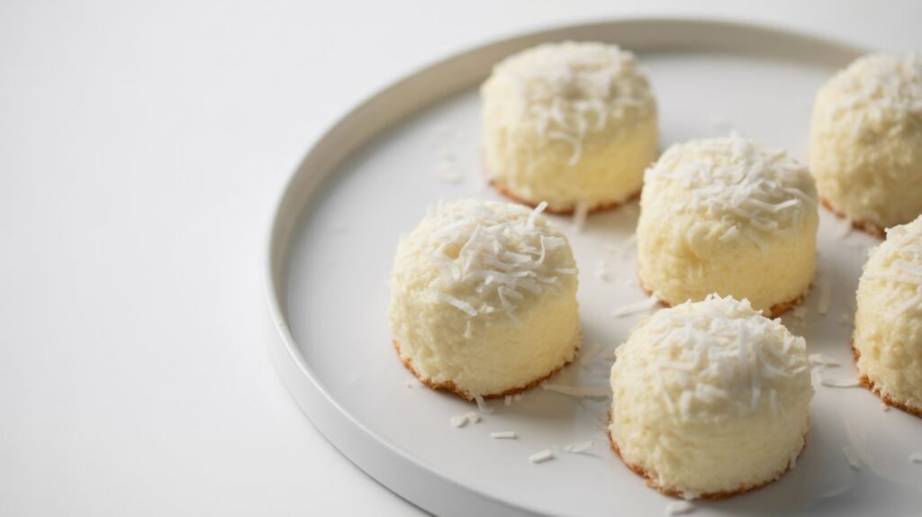 These cakes are light, fluffy, and have a mild coconut flavor.