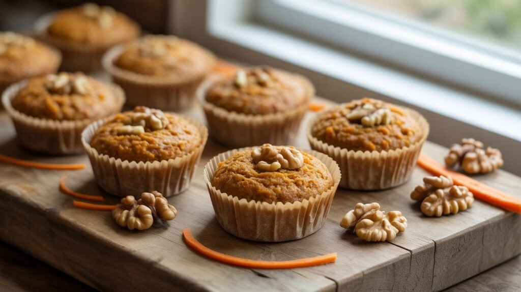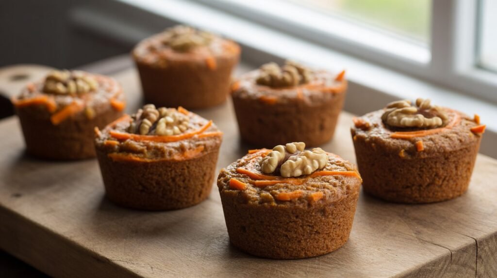 Carrot cakes are naturally sweet and nutrient-rich. These mini versions are packed with fiber from carrots and healthy fats from walnuts.