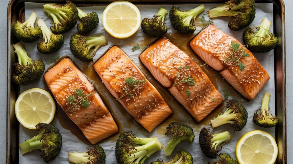 2: Honey Garlic Salmon & Roasted Broccoli Sheet Pan