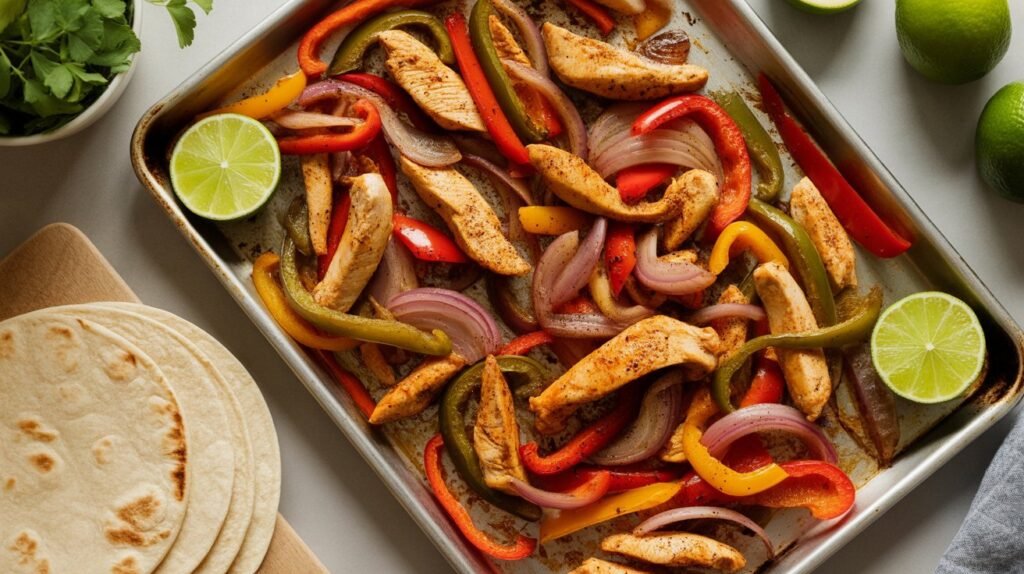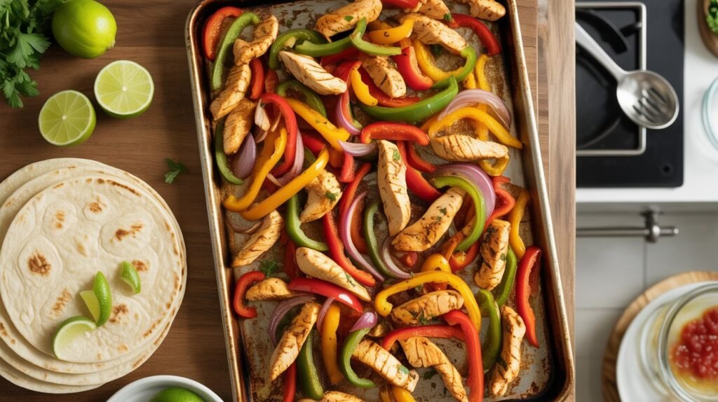 Sheet Pan Chicken Fajitas are a colorful, flavor-packed dinner that comes together fast and keeps cleanup simple. Tender strips of chicken roast alongside vibrant bell peppers and onions, creating a smoky, slightly charred flavor that tastes like it came straight from a sizzling skillet at your favorite restaurant. It’s one of the best easy sheet pan dinners for busy families.