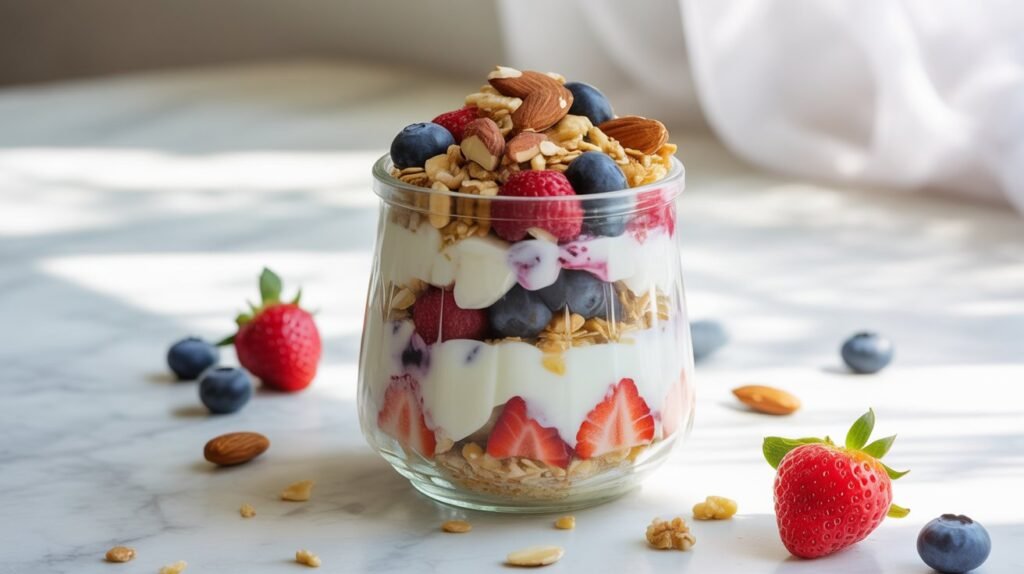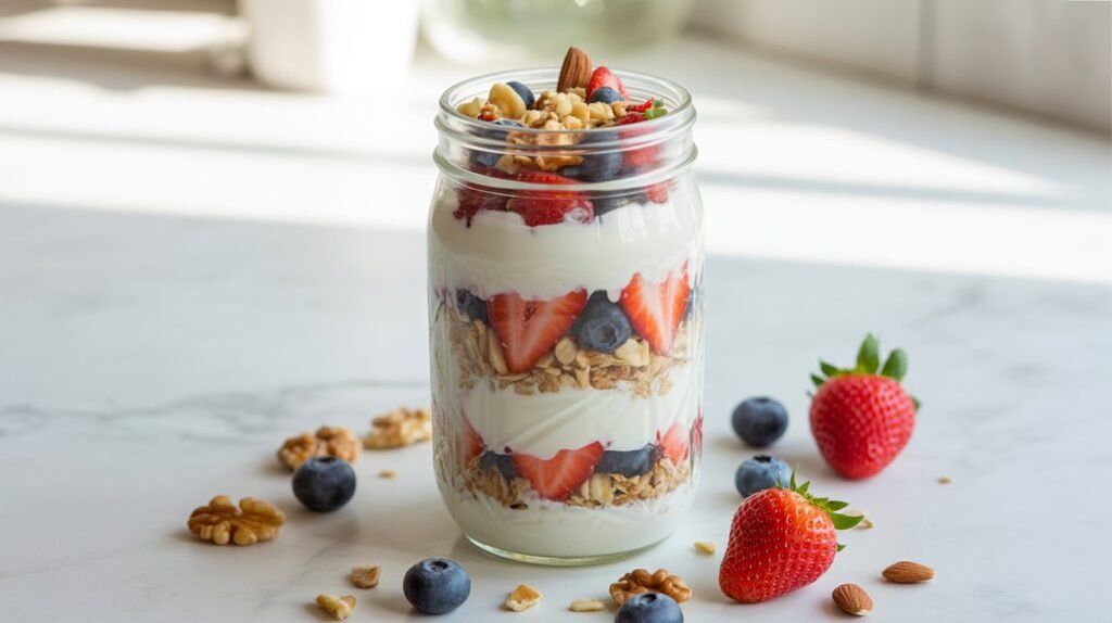 This layered dessert is both beautiful and nutritious. Greek yogurt provides protein while berries add natural sweetness.